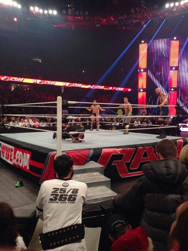 استدعى هذا الموقف تدخل صديق دانيال براين العملاق بيغ شو الذي سجّل عودة مفاجئة للجماهير ودخل لينقذ صديقه المنهك، بدأ بيغ شو العراك مع الثلاثة ليجد المساندة تأتيه بدخول النجم جون سينا راكضا ويعرج بسبب الإصابة إلى الحلبة لترجح الكفة لمصلحة براين ورفاقه.