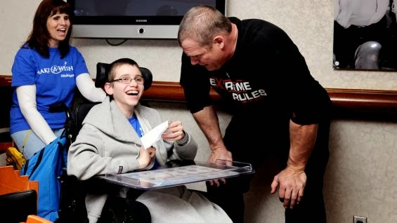 قام النجم جون سينا قبيل عرض الرو الأسبوع الماضي في شيكاغو بتحقيق أمنية الطفل إداورد المصاب بمرض خطير -عافانا وعافاكم الله- وملاقته رفقة عائلته تحت رعاية منظمة “Make A Wish”.