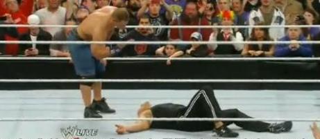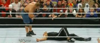 صعد جون سينا إلى الحلبة وترصد للروك الذي أخرج بطل المنظمة لتوّه. وحمله سينا لينال نصيبه من ضربة “تحسين السلوك” الخاصة بالأول. ثم قام سينا بالإشارة للروك بحركته الشهيرة “لا تستطيع أن تراني”. YOU CAN NOT SEE MEE