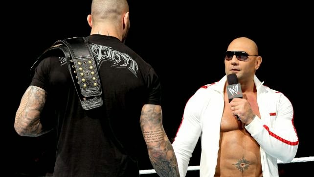 حيث قام باتيستا بتحية كل من تريبل إتش وستيفاني مكمان ثم وجه خطابه للبطل WWE للوزن الثقيل الحالي راندي أورتن وقال بأن هدف عودته للإتحاد واضح وهو الحصول مجددا على بطولة WWE الموحدة.