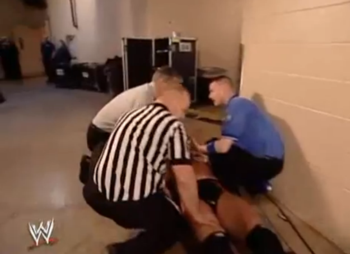 أثناء سير النزال دخلت مجموعة من الرجال متشحين بالأبيض الكامل بمحاولة السيطرة على كين الذي أبى أن يخرج بتلك الطريقة وأخذ في المقاومة إلى أن تمكن من السيطرة على الوضع، وقام بإخراج نفسه من النزال للحاق بمن تبقى منهم.