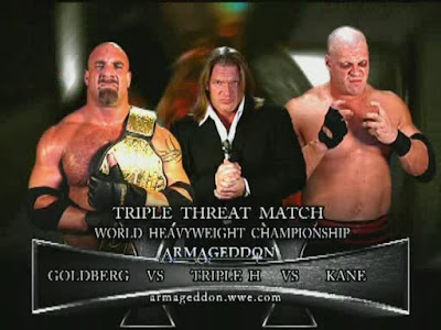 كان نزالا متكافئا بين الثلاثي واقترب كين من الخروج منتصرا بعد تنفيذ حركة شوك سلام على جولدبيرج لولا تدخل الوحش باتيستا وسحبه لكين أثناء تثبيت البطل، مما أعطى الأفضلية لتريبل اتش للتثبيت والفوز بالنزال واللقب، ليكون آخر من يهزم جولدبيرج في العام الوحيد الذي شارك فيه الأسطورة مع WWE.