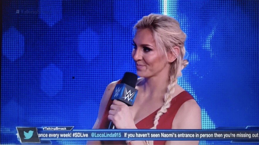 وفى النهاية ظهرت النجمة تشارلوت كأول مشاركة لها فى فقرة TALKING SMACK وقالت انها تتعجب من الذين يشعرون بالمفاجأة لأنها اصبحت المرشحة للمنافسة على حزام بطولة السيدات الاسبوع المقبل، وقال شاين ماكمان انه لم يتفاجأ على الاطلاق وان تشارلوت استحقت ما حققتهم اليوم بأن تضع نفسها فى منافسة على اللقب بعد اسبوع واحد فقط من وصولها الى سماك داون، فقالت تشارلوت ان لا أحد مثلها وانها حذرت الجميع حين أتت الى هنا، وان من سيقف فى وجهها سيكون مصيره الخسارة ومن ثم غادرت المكان. وقال شاين بعدها ان على الجميع ان لا يستخفوا بالنجمة نايومي لأنها لن تتنازل عن حزامها بهذه السهولة.
