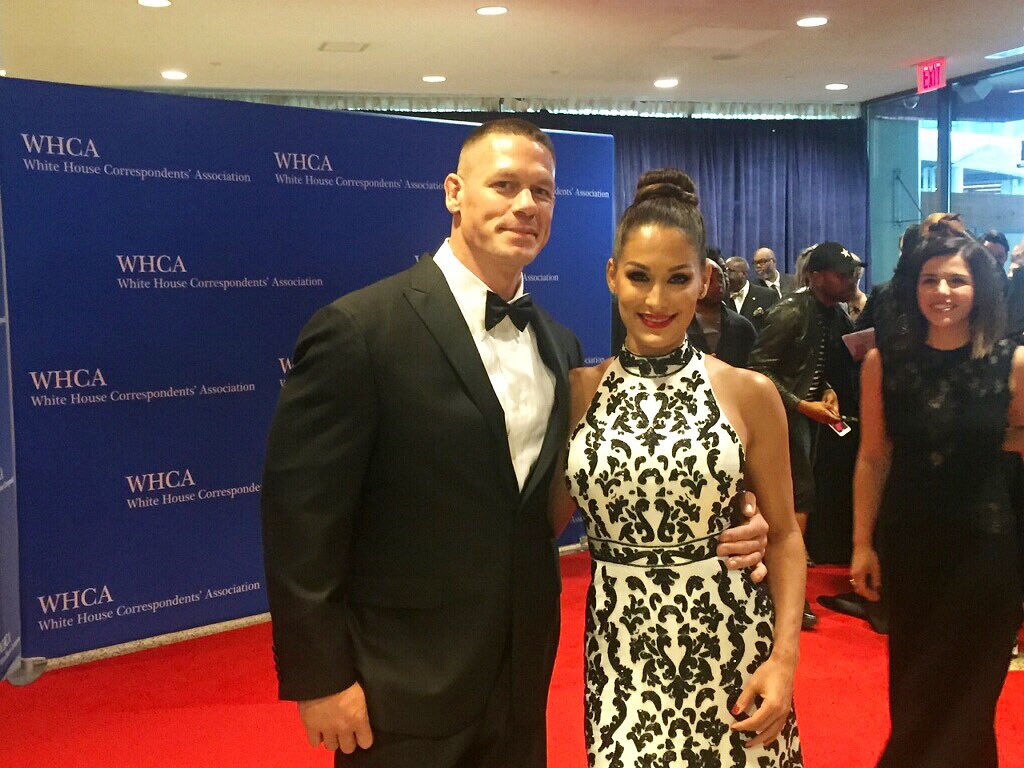 حصل نجم WWE الأول جون سينا على دعوة رسمية من منظمة مراسلي البيت الأبيض الصحفية لحضور حفل العشاء السنوي الذي أقيم يوم أمس في العاصمة واشنطن بحضور الرئيسي الأمريكي بارك أوباما، ورافقت النجم نكي بيلا صديقها سينا في ذلك الاحتفال ونشر كلاهما عدد من الصور أثناء وصولهما لذلك الحدث.