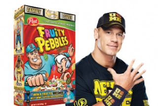 أضافت الشركة المنتجة لحبوب الغذاء فروتي بيبلز صورة النجم جون سينا على نسخة جديدة من عبوّاتها ولفترة محددة ليلح بديلا للشخصية الكرتونية الشهير فريد فلينستونز.