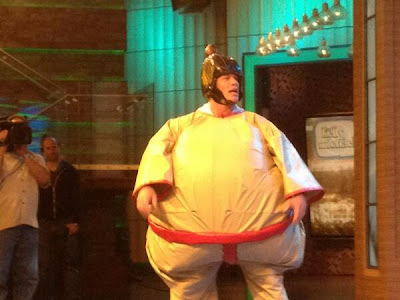 ونشر جون سينا صورة طريفة جدا لنفسه أثناء البرنامج وهو يرتدي ملابس مصارعي السومو مع خوذة المحاربين.