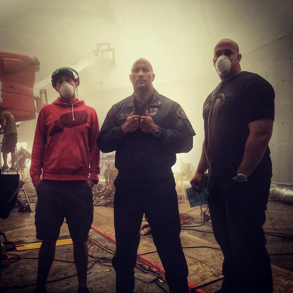 نشر النجم السنيمائي العالمي والمصارع الأسطوري دواين “ذا روك” جونسون صورة من خلف كواليس تصوير فيلمه الجديد “سان أندرياس” الذي يتوقع أن يعرض في دور السينما الأمريكية في الربع الأخير من العام الحالي 2014.