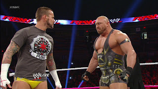 أشار رايباك لروس بالعودة معه إلى الحلبة ثم تبادل النظرات الغاضبة مع سي ام بانك الذي فضّل مغادرة الحلبة تجنبا لمواجهة غير محسوبة العواقب.