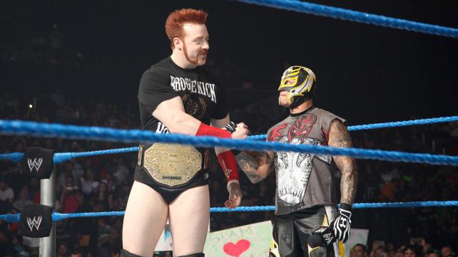 ظهر المصارع شيمس رفقة الطائر ري مستريو في الصفوف الأولى خلال مباراة كرة سلة NBA في مدينة نيو أورلينز التي ستستضيف مهرجان الراسلمانيا 30.