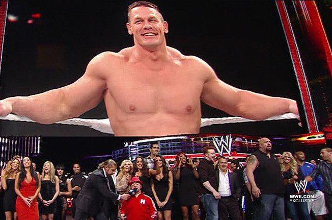 بتاريخوقاموا جميعا بغناء “ميلاد سعيد جون سينا” ومن الملفت هو ظهور رئيس مجلس إدارة والمدير النتفيدي لـ WWE فينس ماكماهون وتريبل اتش في طليعة المشاركين. شاهدوا الفيديو.