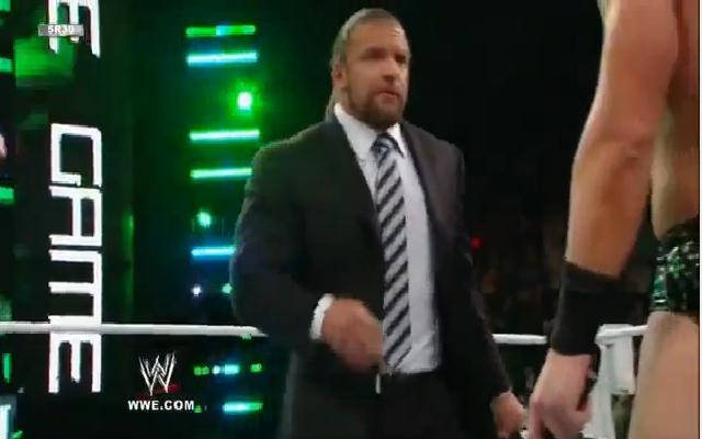 لم يلبث ميز طوبلا إلى أن خرج له تريبل اتش وضربه بالقاضية وغادر الحلبة. ونذكر أن هذه الأحداث حصلت أثناء الفاصل الإعلاني على القنوات التفلزيونية جميعها. شاهدوا الفيديو.