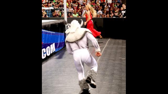 بعد ذلك النزال يطل علينا النجم الإيطالي المرح سانتينو ماريلا بفقرة كوميدية كما عودنا دائما في مرات ظهوره القليلة لكن هذه المرة بجانب النجمة الشابة إيمًا، والتي أرى أنه سيكون من الظلم لها أن تبدأ مسيرتها بالطابع الكوميدي بجانب سانتينو لأنها من القلائل التي تلتمس فيها الموهبة التي يمكنها من خلالها أن تصبح بطلة للديفاز في فترة وجيزة.