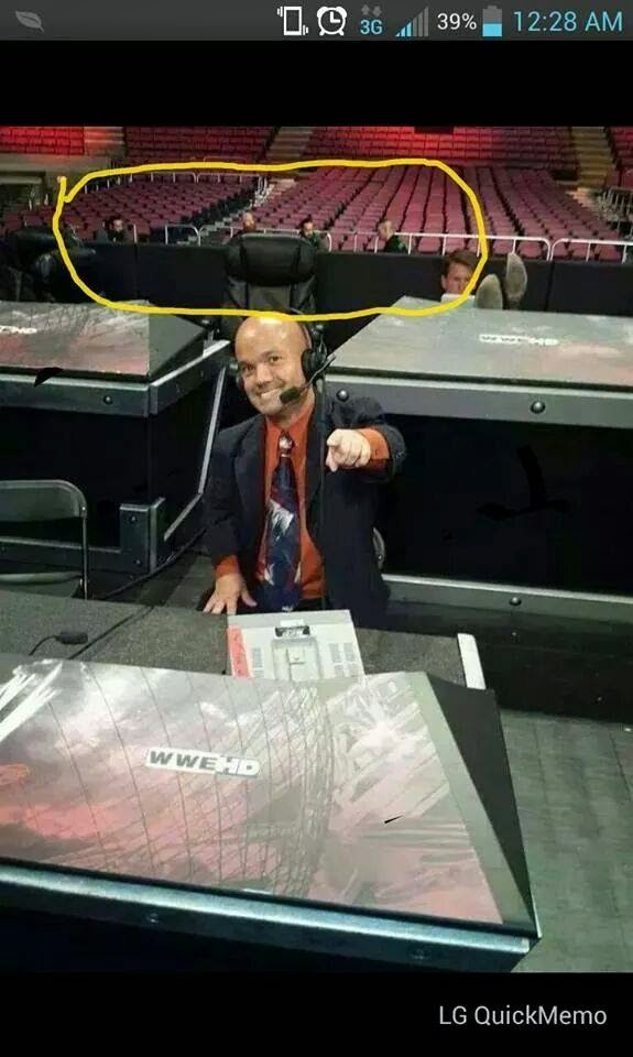 لكن من إلتقط هذه الصورة ونشرها غفل عن وجود تفصيل صغير ومثير للإهتمام في الخلفية وهو وجود كل من جون سينا وثلاثي عائلة الوايت وجلوسهم في مقاعد الجماهير وهم يتفقون على إستراتيجية وسيناريو النزال الذي جمعهم لاحقا.
