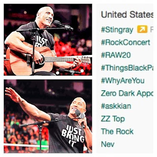 حيث كان موضوع غناء ذا روك #RockConcert الأكثر تداولا بين مستخدمي موقع تويتر في الولايات المتحدة بحسب الصورة التي تظهرذلك.